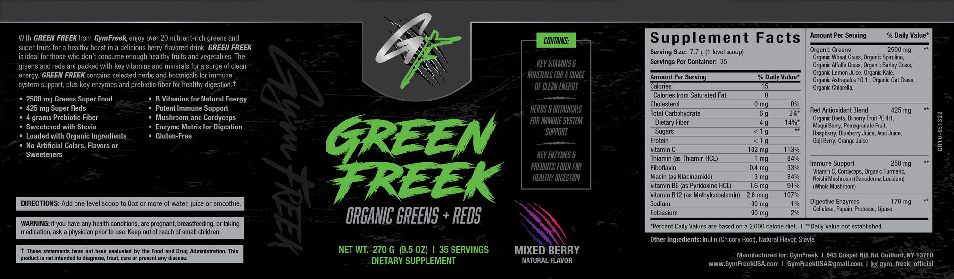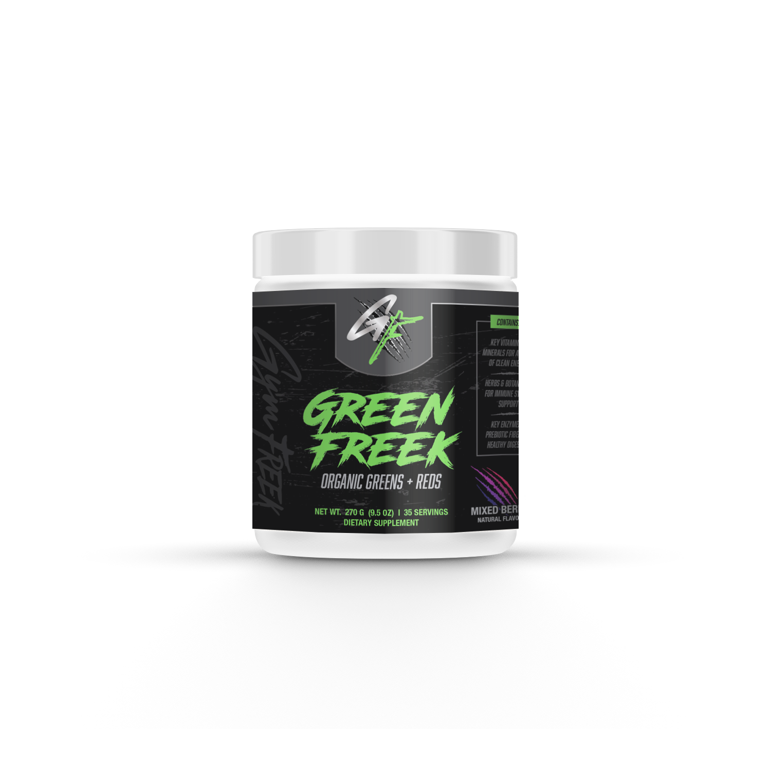 With Green Freek you can enjoy over 20 nutrient-rich greens and super fruits for a healthy boost in a delicious mixed berry flavored drink. Green Freek is ideal for those who don’t consume enough healthy fruits and vegetables. The greens and reds are packed with key vitamins and minerals for a surge of clean energy. Green Freek contains selected herbs and botanicals for immune system support, plus key enzymes and prebiotic fiber for healthy digestion.
